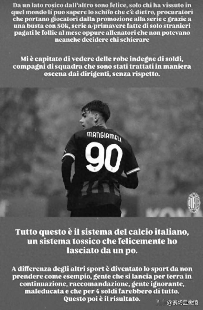 起初站出来的是前米兰青训球员曼贾梅利。他直肚直肠:牙东说念主靠一个5万欧元的信封,就能把球员从地区业余联赛胜利运作进意丙。更乖僻的是,有些评释连首发气势齐无权决定。