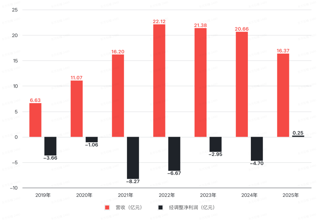 2019—2025年,Keep的营收与经调节净利润情况。图/中国新闻周刊整理自招股书及财报