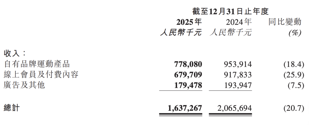 但变现效用的普及,难以对消用户范围下滑的影响。客岁,Keep自有品牌融会居品、线上会员及付费内容、告白过火他三伟业务的营收差别同比下滑18.4%、25.9%、7.5%,呈现全线收缩。