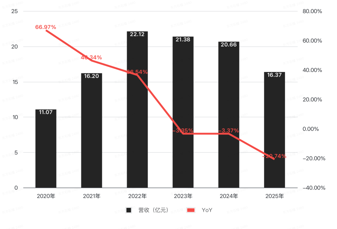 其中,客岁营收下滑幅度更是远超2023年和2024年的约3%,达到了20.74%。