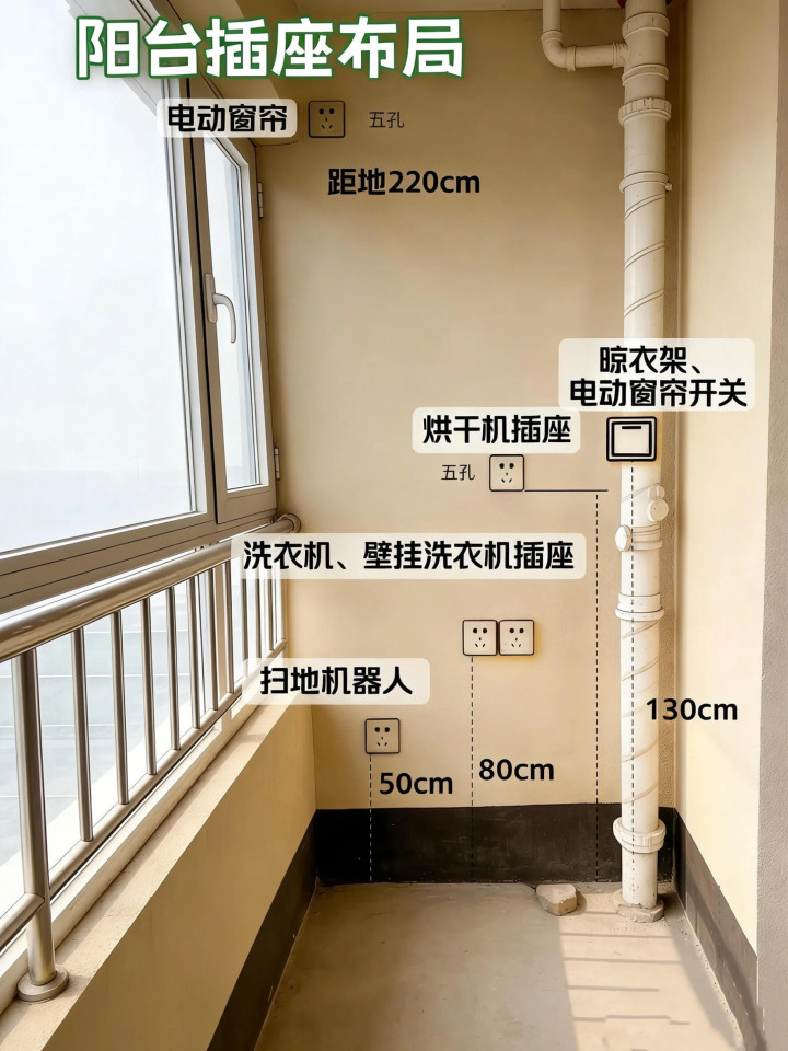 七、阳台:洗衣烘干扫地机,预留到位不返工