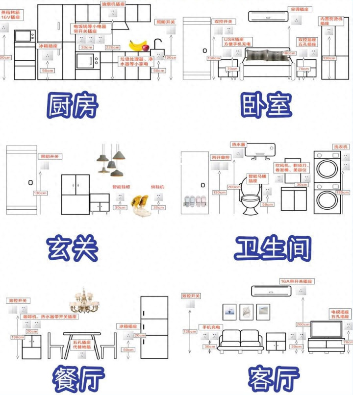 今天这份全屋7大空间插座布局+高度指南,漠视装修前一定存下来,水电交底时平直拿给工东说念主看,能帮你少走不少弯路。