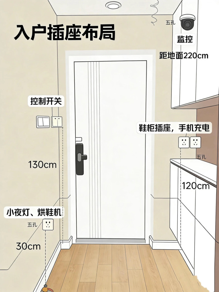 玄关不仅仅换鞋的所在,当今越来越多的智能树立需要用电: