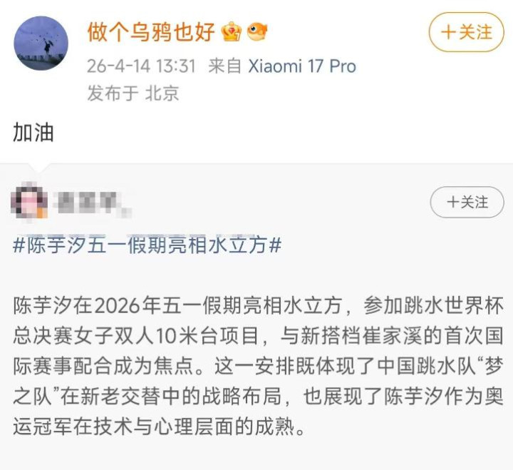 她评述陈芋汐领衔出战寰球杯总决赛、全红婵缺席的新闻只发了“加油”二字,看似中立实则蹭热度,被网友一眼看透。