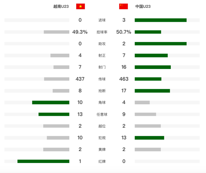 在北京时间1月21日结束的U23亚洲杯第2场半决赛中,中国U23男足3-0力挫十人越南U23男足,队史首次跻身决赛。上半场,李昊多次救险+造黄牌,杨希错失良机。下半场,彭啸和向余望在5分钟内连进2球,彭啸比赛尾声进球被吹,王钰栋读秒锁定胜局。最终,U23国足3球完胜越南。