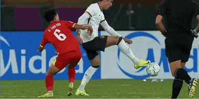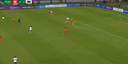 第74分钟,彭啸破门后,拜合拉木拿球被对手拳击,范理德报复性动作吃到直红,越南剩余时间少打1人。