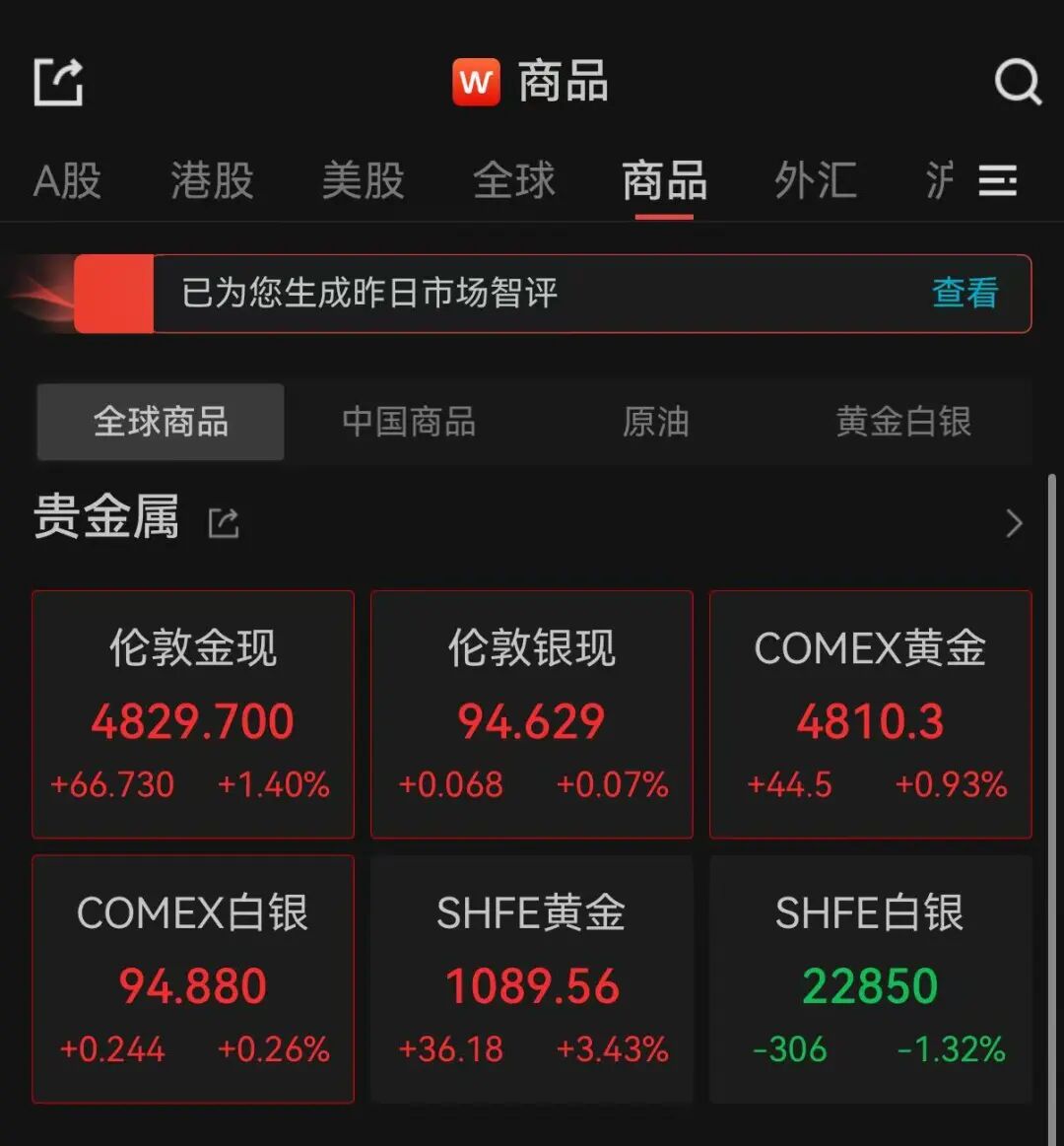 21日上午,现货黄金(伦敦金现)强势拉涨,盘中站上4800美元,再刷新历史新高。截至发稿,报4829.700美元/盎司,涨1.40%。COMEX黄金期货涨近1%,报4810.3美元/盎司。