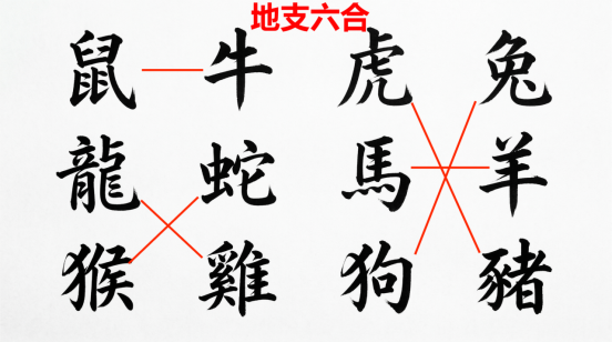龙与鸡合,辰酉相合,龙之威望配鸡之紧密,相互竖立。蛇与猴合,巳申相合,两者齐忠良锐利,懂得相互的心念念。马与羊合,午未相合,马之奔放遇羊之暖热,柔软与柔情斡旋。此六对生肖,若结为浑家,多能相互和会、相互扶握,婚配暄和。