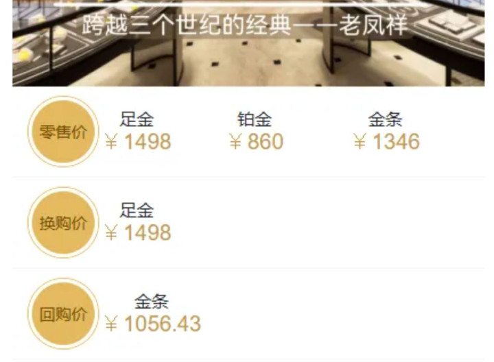 老凤祥上海会员中心小程序发布数据显示,足金饰品报1498元/克,较1月20日1456元/克涨42元/克。