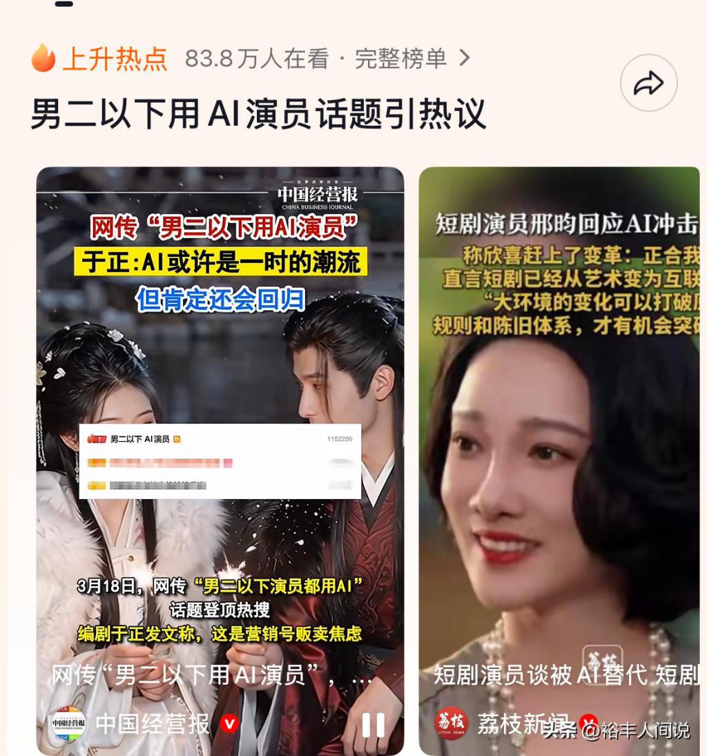 再一个就是 AI 的取代,当下的 AI 不错完成许多演员需要作念的事情,再加上成本相比低,是以就会导致许多演员无戏可拍。